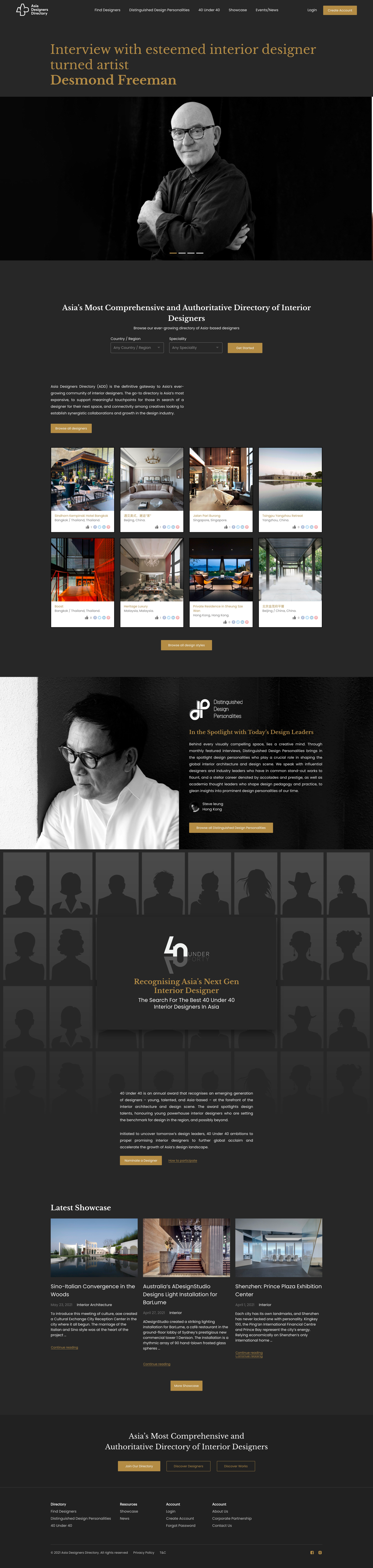 Asia Designers Directory (ADD) is Asia’s most comprehensive and authoritative directory of interior designers. Designers can register and create a profile to showcase their portfolios, while the platform featured a magazine style design to showcase some of the top works in Asia. A dark contemporary design was chosen to bring out a sense of boldness, excellence and class.