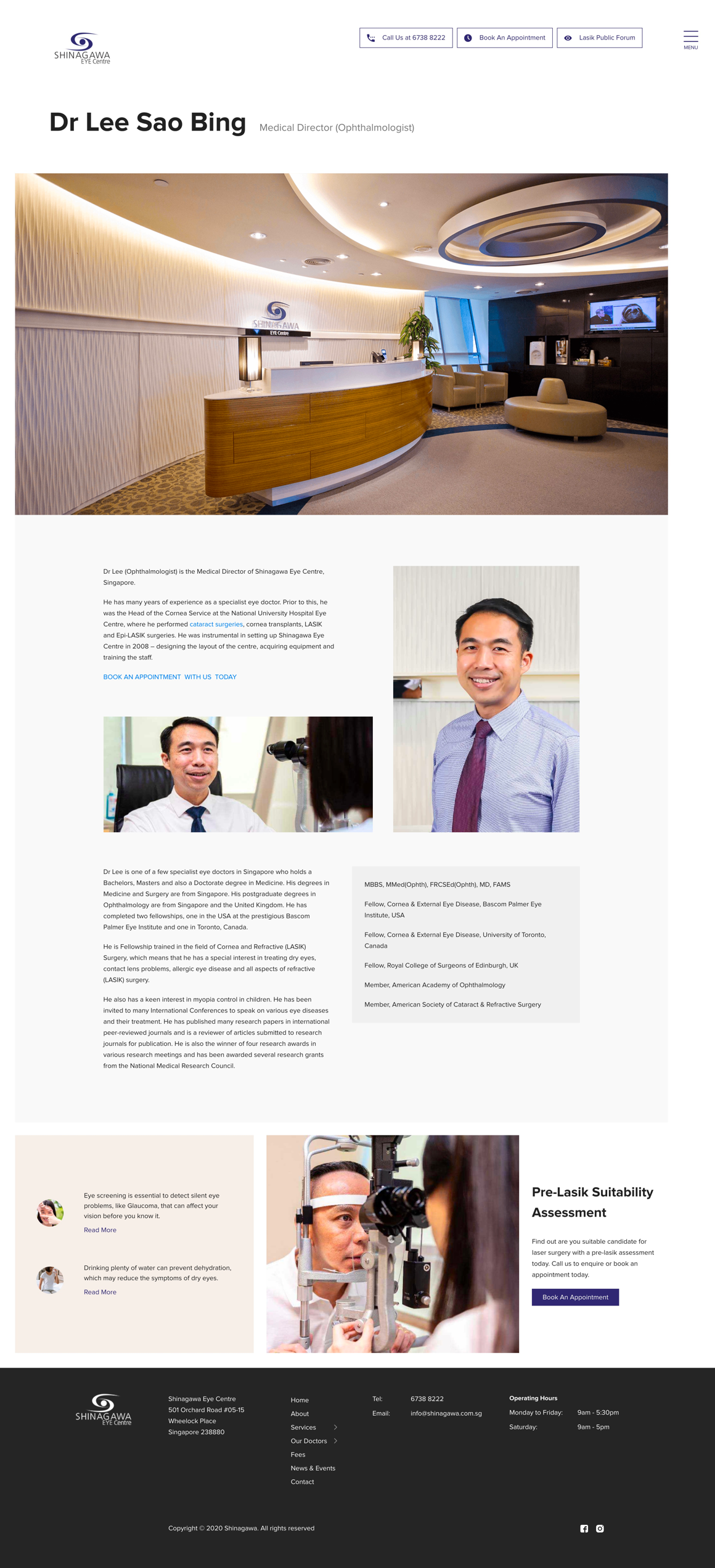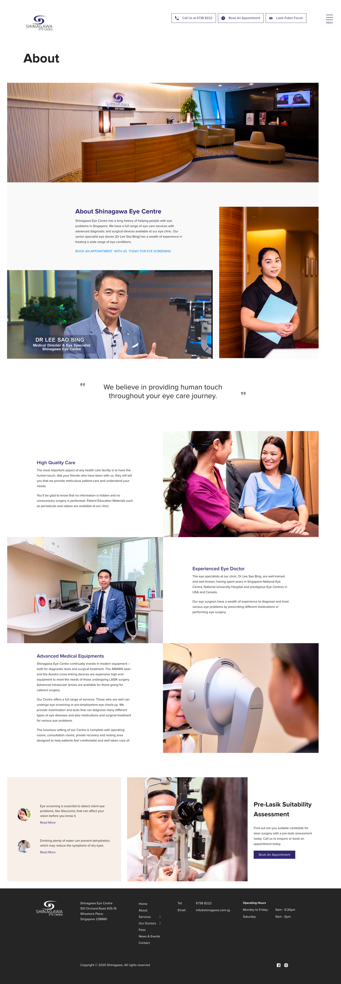 Shinagawa Eye Centre has a long history of helping people with eye problems in Singapore, offering a full range of eye care services with advanced diagnostic and surgical devices at the clinic. A modern, minimalistic and clean look was adopted to communicate the quality of care, and level of professionalism of the centre.